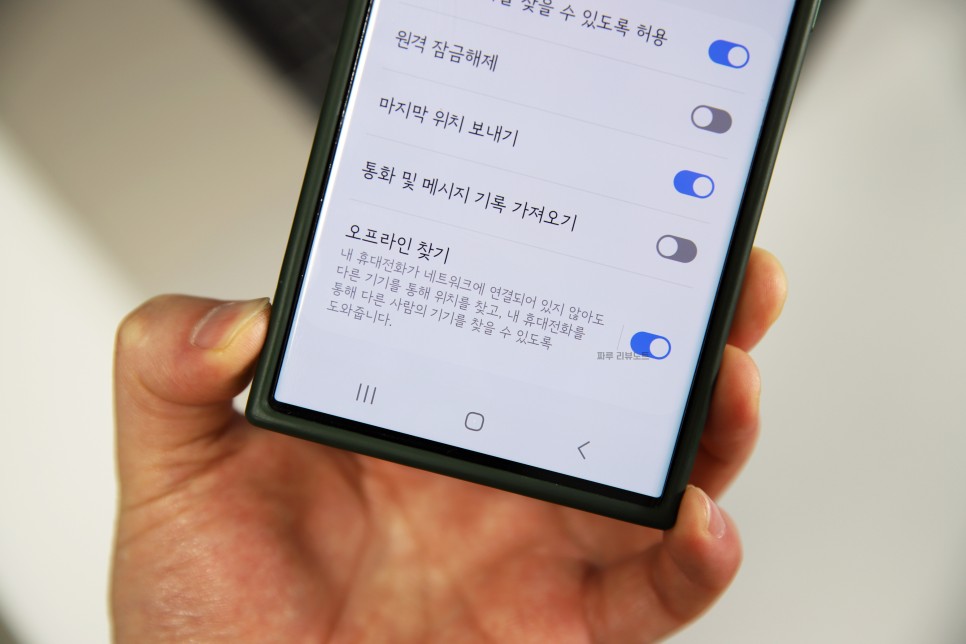 마지막으로 [오프라인 찾기]는 휴대전화가 네트워크에 연결되어 있지 않아도 다른 디바이스들을 통해 여러분의 스마트폰을 찾을 수 있도록 도와주는 항목이다. 이 중에서 필요하다고 생각되는 것들만 선택적으로 활성화해도 되지만, 개인적으로 혹시나 모를 상황에 대비해 모든 기능을 켜놓는 것이 좋다.