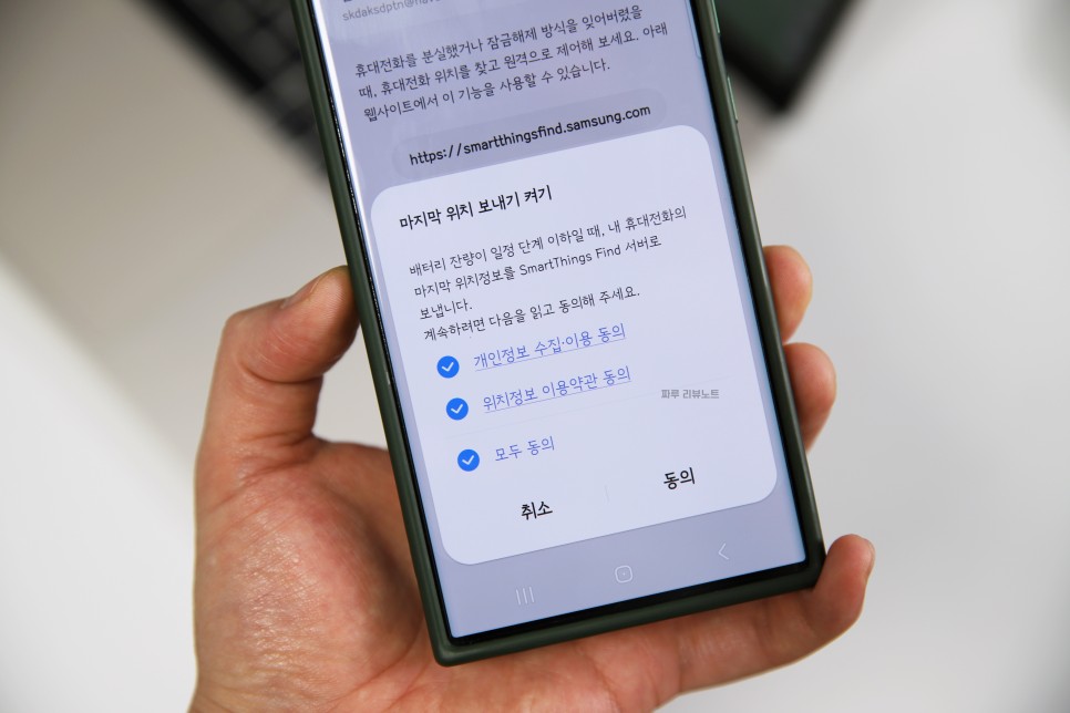 [마지막 위치 보내기]는 삼성전자 서버에 업로드된 갤럭시 기기의 마지막 위치를 공유해 주는 기능이므로 항상 켜놓는 것이 좋다.