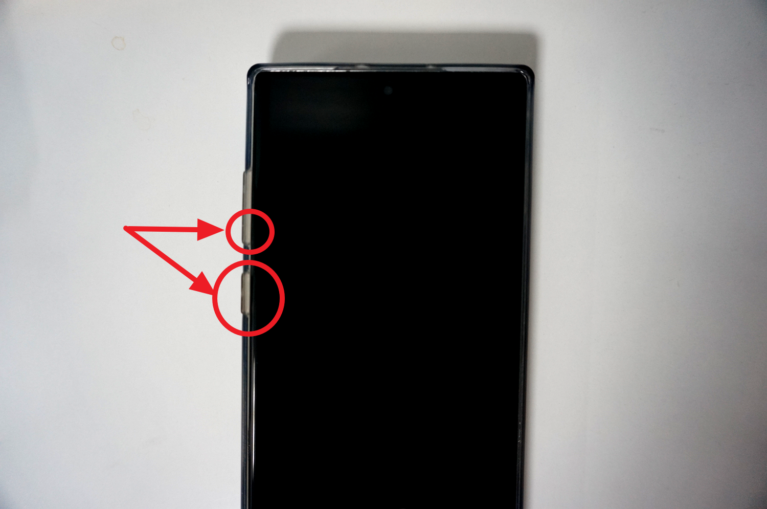 일반적인 방법: 홈 버튼과 전원 버튼을 또한 누르세요. 이 조합은 대부분의 갤럭시 휴대폰에서 작동해요. 화면이 한번 깜빡이면서 캡쳐된 이미지를 확인되고 있습니다.